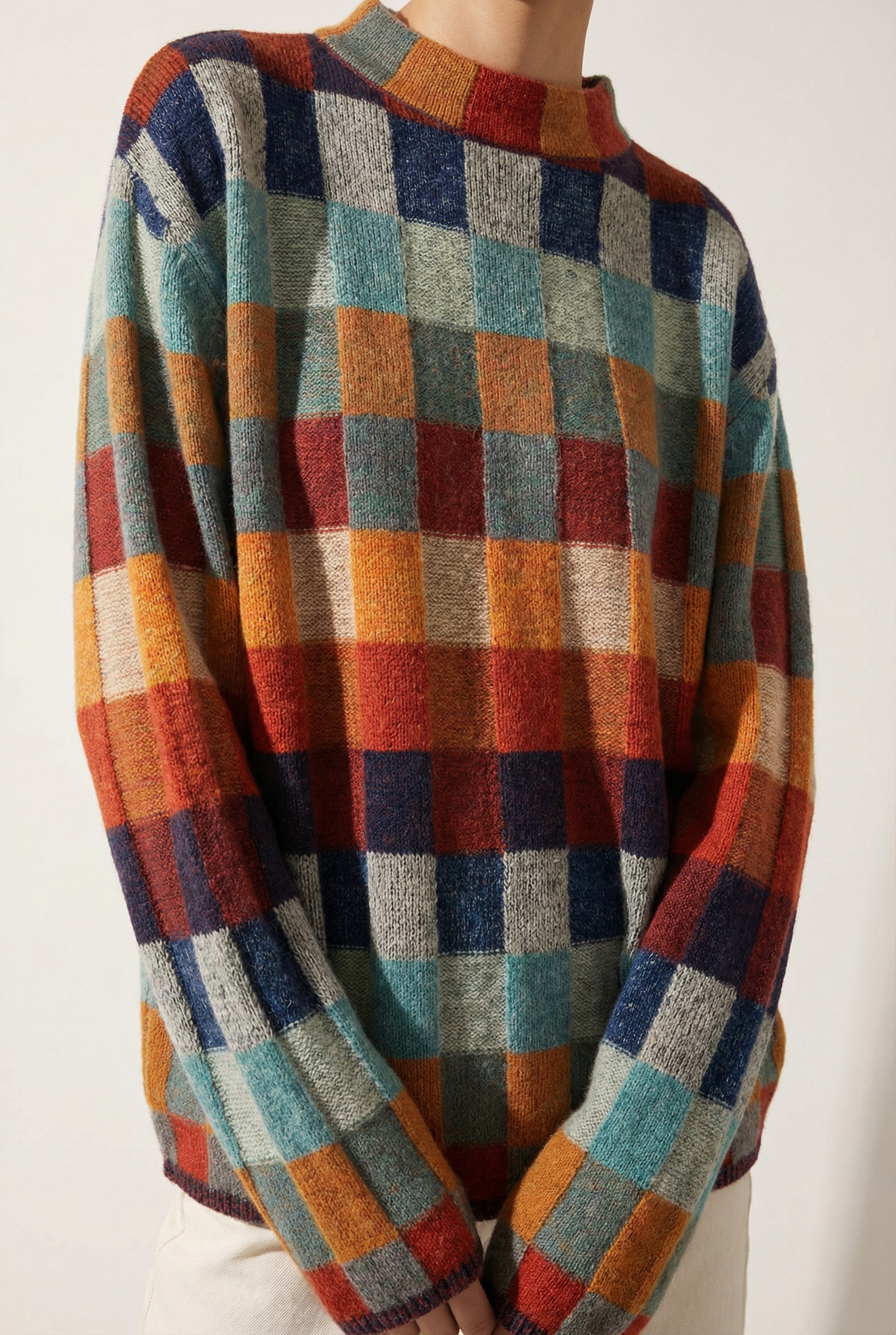 • Loose-fitting turtleneck.